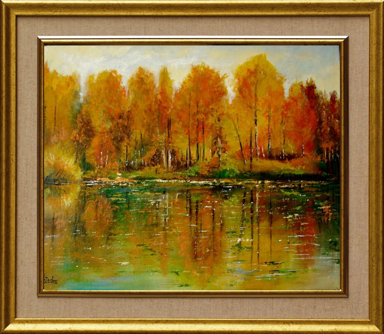 .Obraz olejny Magia jesieni namalowany na płótnie o wymiarach 50-65 cm.