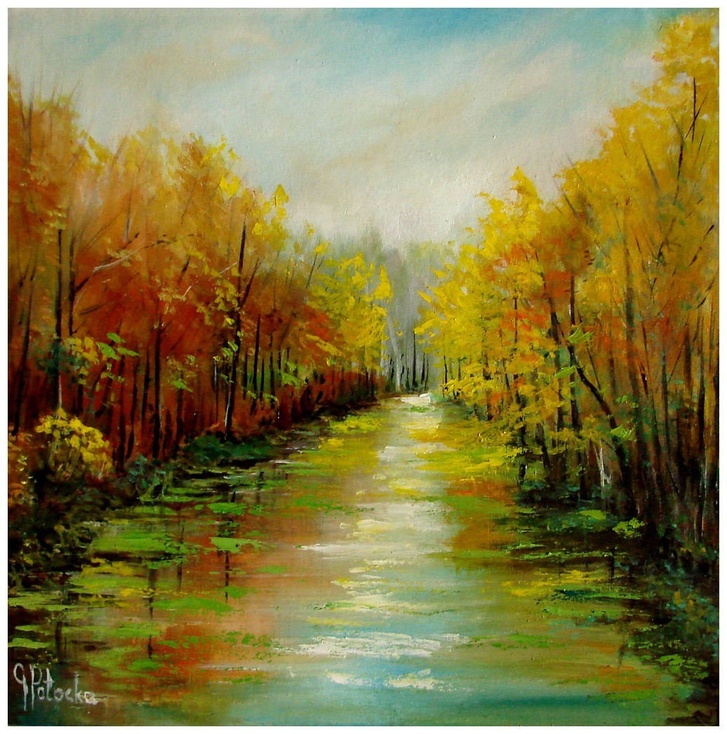 Obraz olejny ,,W porannym słońcu ,, rozmiar 40-40 cm namalowany ekspresyjnie w bogatej, nasyconej kolorystyce.
