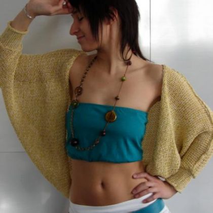 łatwe do narzucenia, lekkie, przewiewne, idealne do dopełnienia letniej stylizacji lub po prostu do otulenia w chłodny poranek lub letni wieczór. Bananowy kolor