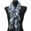 jeden z szaliczków jest gładki, w kolorze popielatym, natomiast drugi jest w podobnej tonacji i ma wzór kwiatowy.