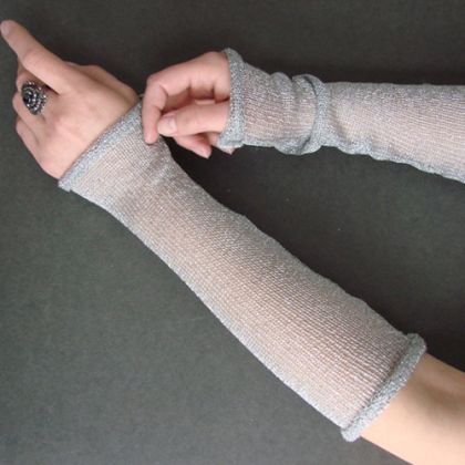 - wykonane ze srebrzącej się, cieniutkiej dzianinki o lekko metalicznym połysku