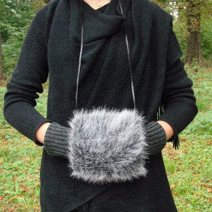 ozdobiona sztucznym futerkiem w kolorze jasno popielatym