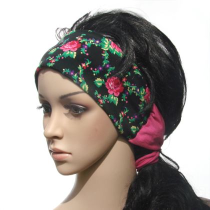 opaska z tyłu przymarszczana na gumkach, a więc jest dobra dla każdego obwodu głowy
