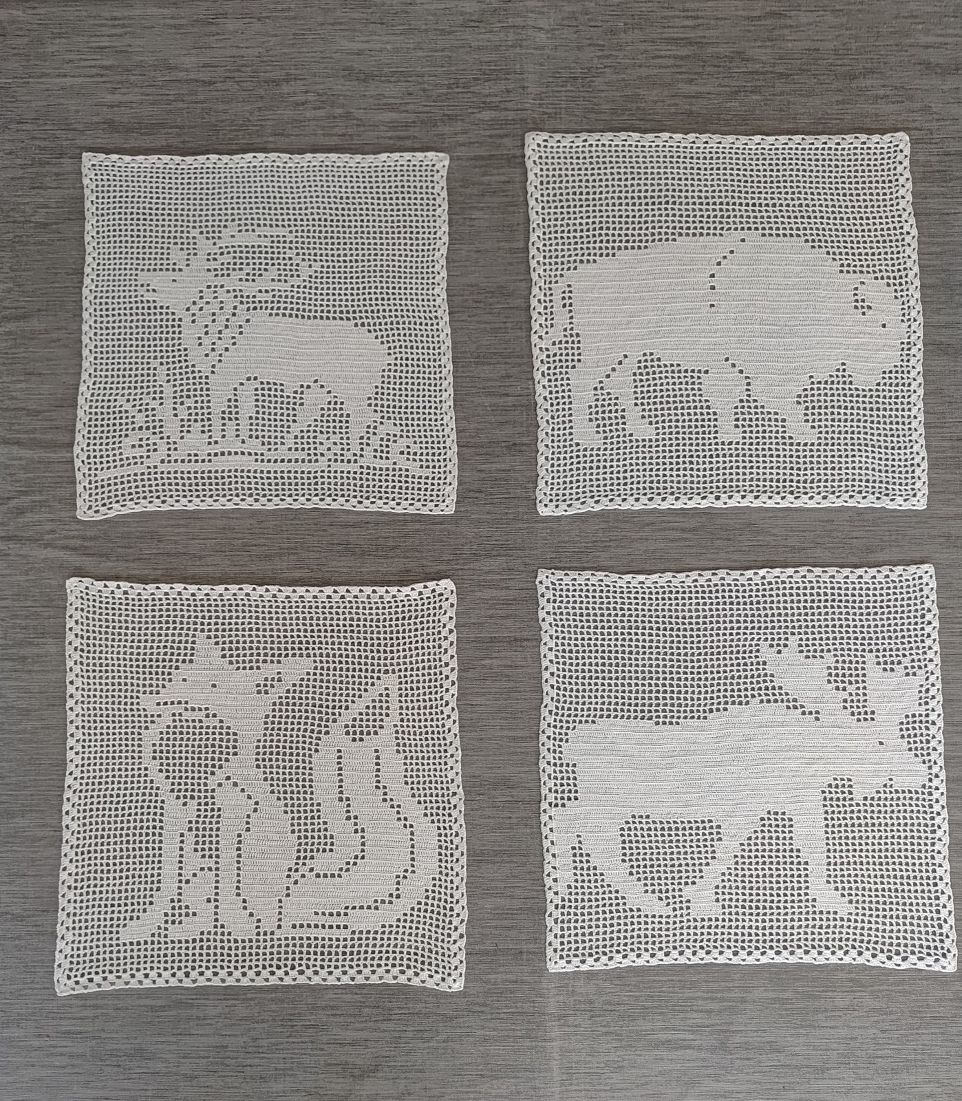 4 serwetki szydełkowe z leśnymi zwierzątkami