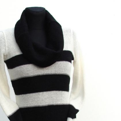 cienki ale ciepły sweterek z luźnym golfem osadzonym na dekolcie,