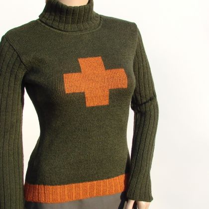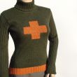 ciepły, miękki, niegryzący golf z geometrycznym akcentem z przodu i ściągaczowymi rękawami,