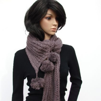 bardzo ciepły, puszysty i miękki szal z pomponami
