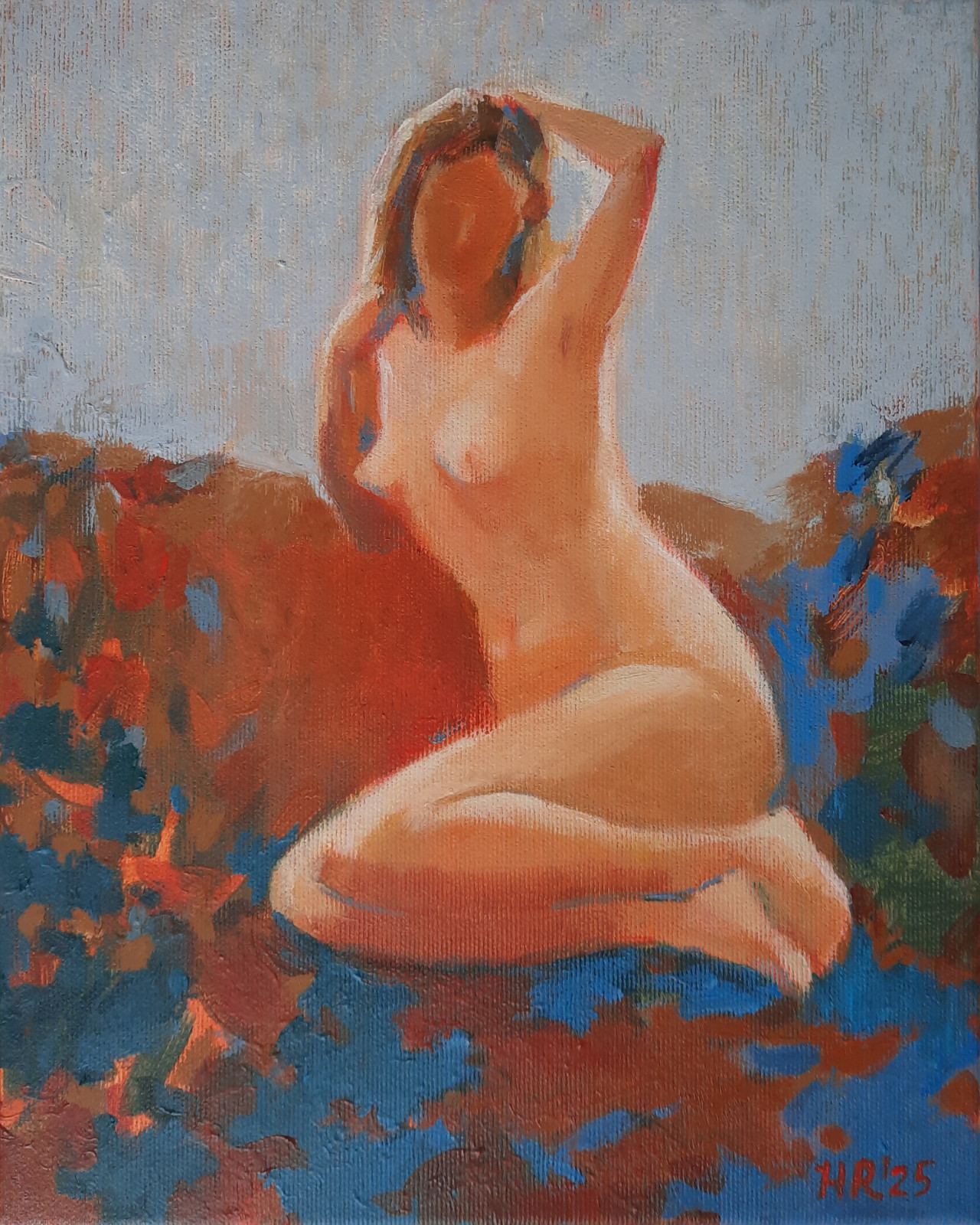 Studium postaci kobiecej oparte na relacji koloru i formy.