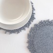 Zestaw czterech okrągłych podkładek pod talerze. Wycięte laserowo w szarym filcu 4mm. Zainspirowane wiosennym wiankiem z gałązek i młodych listków. Podkładka delikatna, a zarazem solidna, nie zniekształca się podczas użytkowania. Filc pięknie komponuje się z nowoczesnymi wnętrzami, współgra z laminowanymi powierzchniami, nadając im ciepły charakter. Polecam.