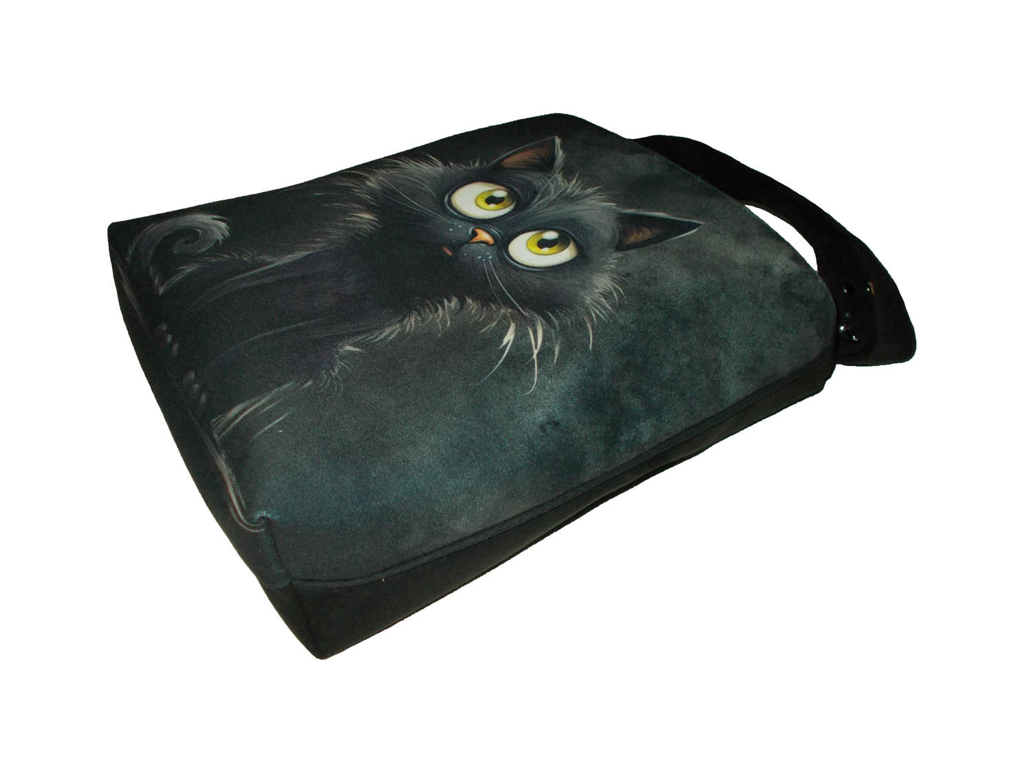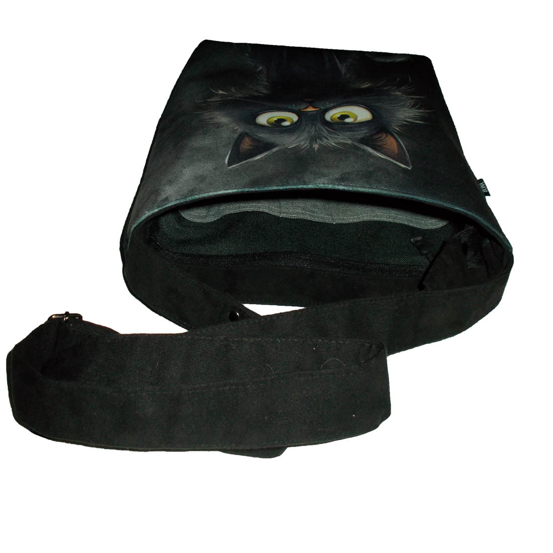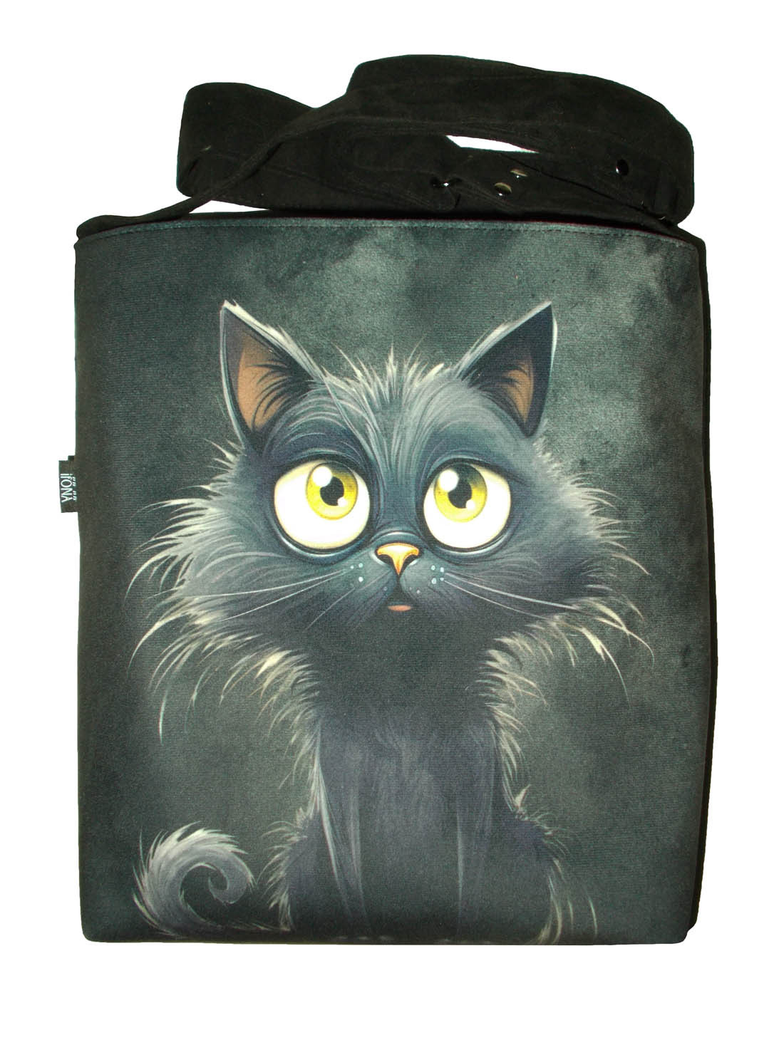 Autorska torba z usztywnionego eko zamszu, zapinana na zamek. Przód z weluru tapicerskiego. Pasek regulowany. Tył w korze paska (czarny) Torba trzyma fason. Wewnątrz dwie kieszenie - jedna na zamek, druga z miejscem na telefon i coś jeszcze. W szwach wypustka. Denko poszerzone. szerokość 32cm wysokość 30cm plus denko 8cm