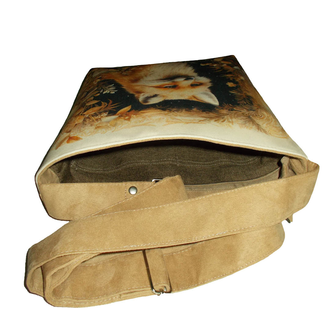 Autorska torba z usztywnionego eko zamszu, zapinana na zamek. Przód z weluru tapicerskiego. Pasek regulowany. Tył w korze paska (beż) Torba trzyma fason. Wewnątrz dwie kieszenie - jedna na zamek, druga z miejscem na telefon i coś jeszcze. W szwach wypustka. Denko poszerzone. szerokość 32cm wysokość 30cm plus denko 8cm