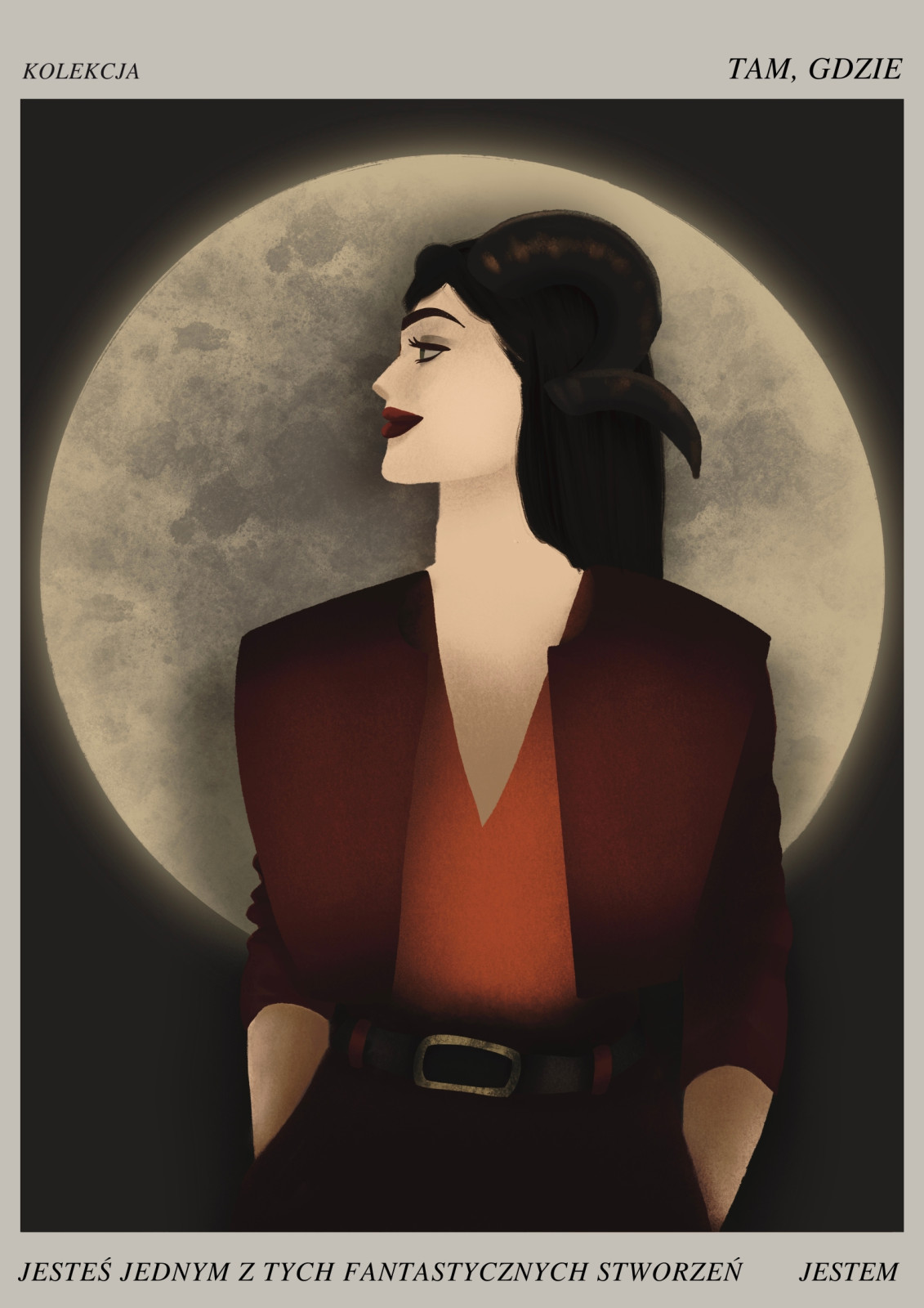 Plakat inspirowany światem mitów i fantastycznych postaci, które od zawsze symbolizują siłę, wolność i wewnętrzną moc. Praca nawiązuje do pierwotnej, dzikiej części kobiecej natury: