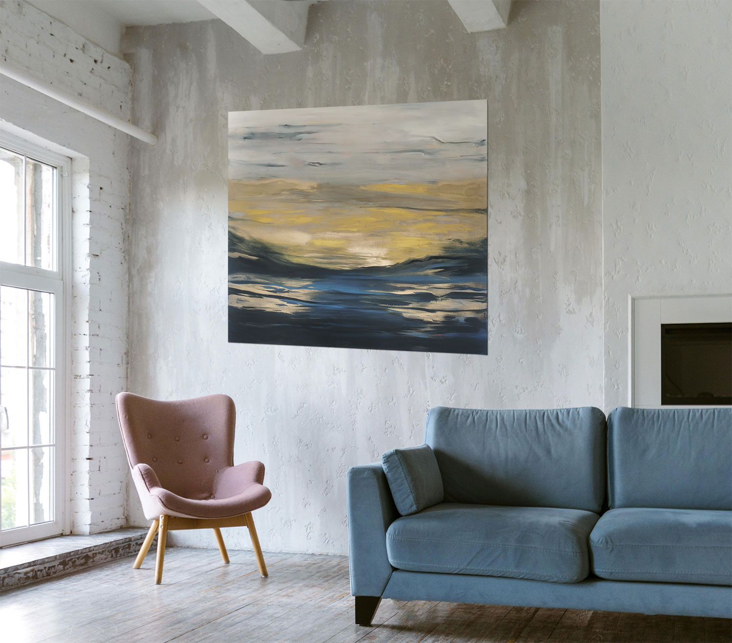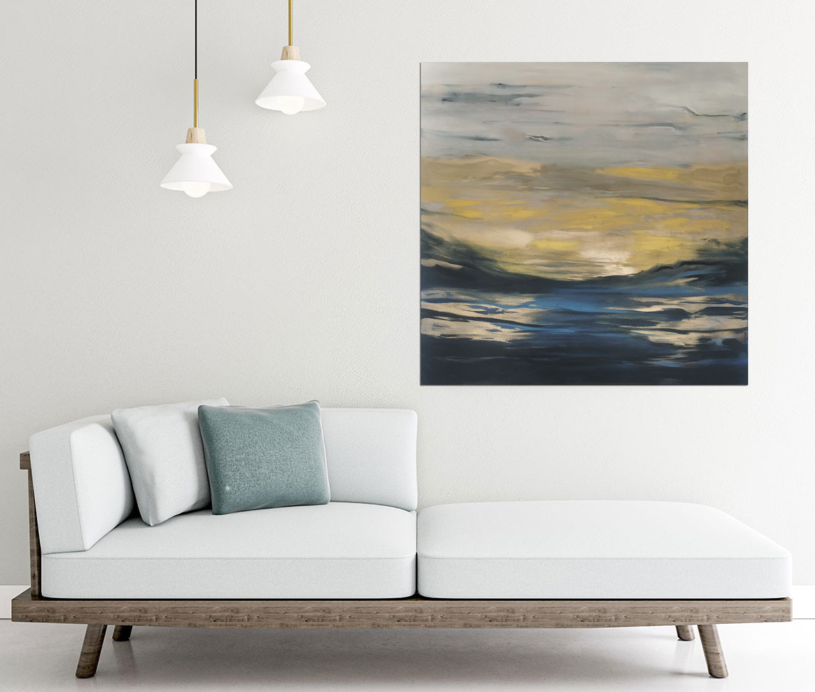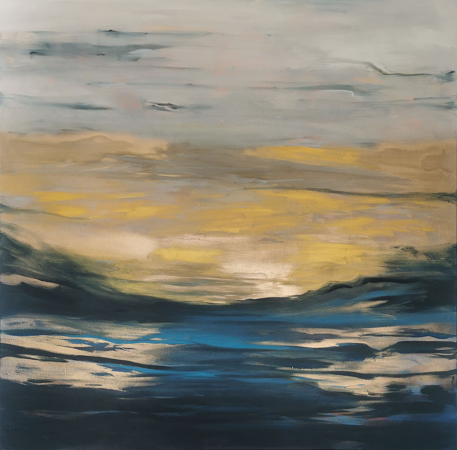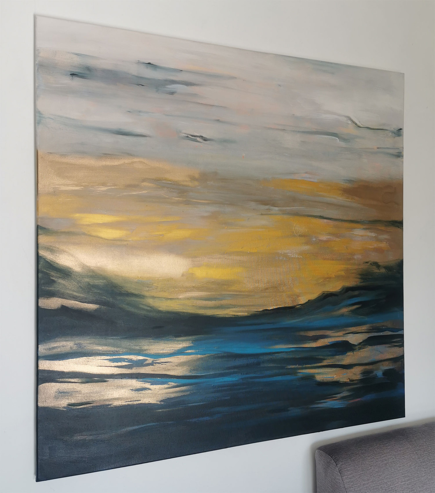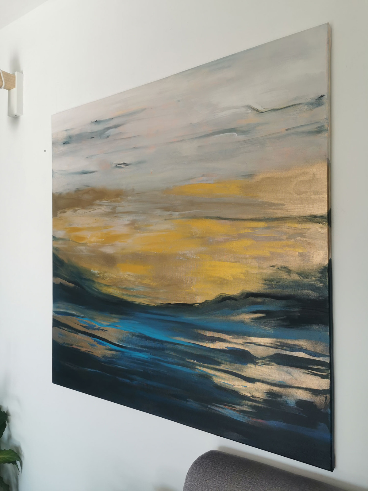Przedstawiam obraz Cisza po burzy o wymiarach 100 x 100 cm, akryl na płótnie  z elementami złota.