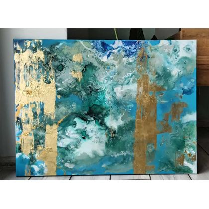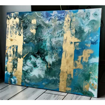 Przedstawiam obraz Złota Laguna, z elementami złota, wymiary 80 x 60 cm, akryl na płótnie.