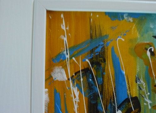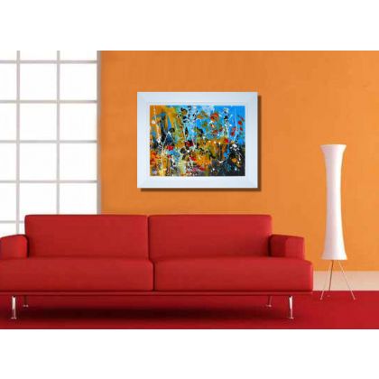 Akryl na papierze Canson 250 g/m2, o wymiarze 30x40 cm. Praca oprawiona jest w białą ramę ze szkłem, gotowa do powieszenia . Całkowity rozmiar wraz z ramą 39x49 cm.