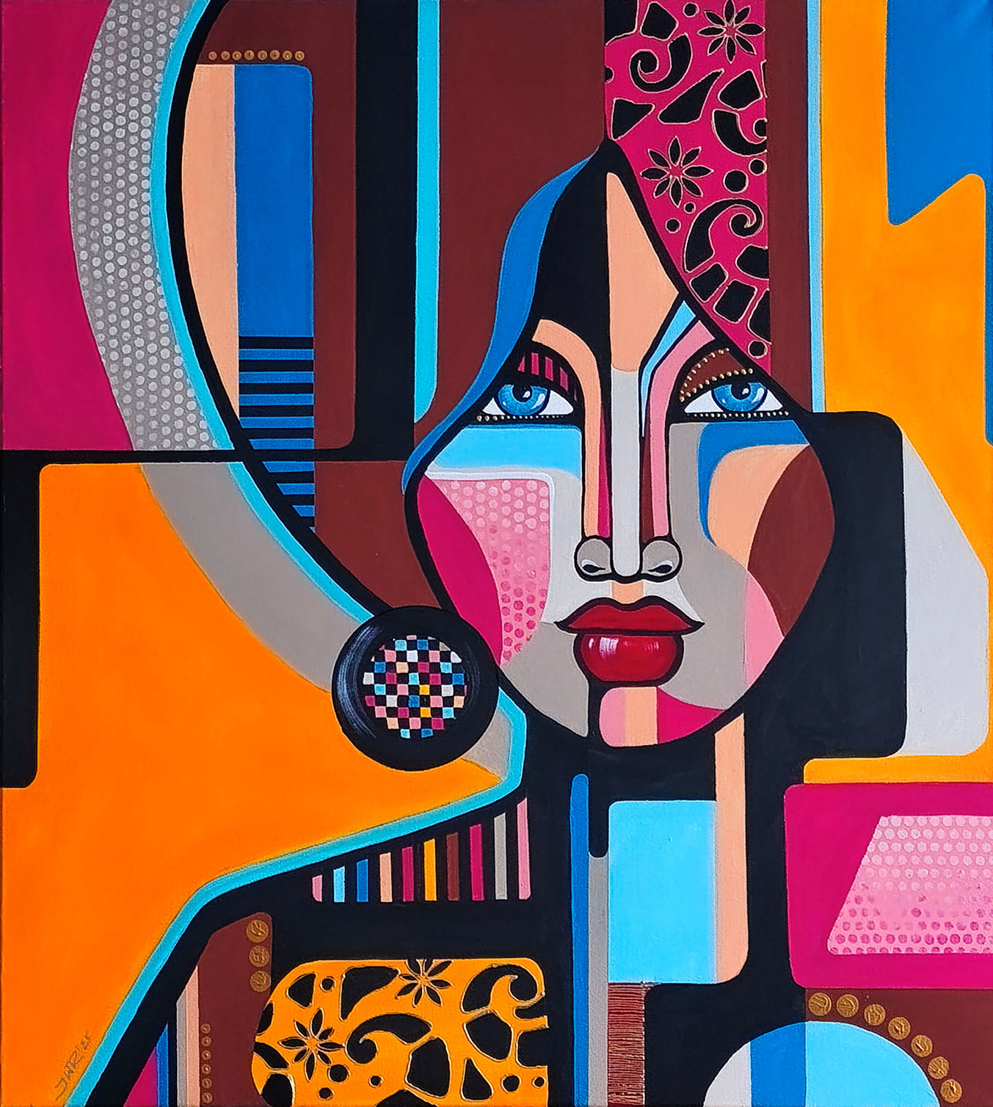 Obraz wykonany w technice akrylowej . Obraz posiada zamalowane boki, które sa kontynuacja motywów na obrazie, Wymiar 100x90 cm