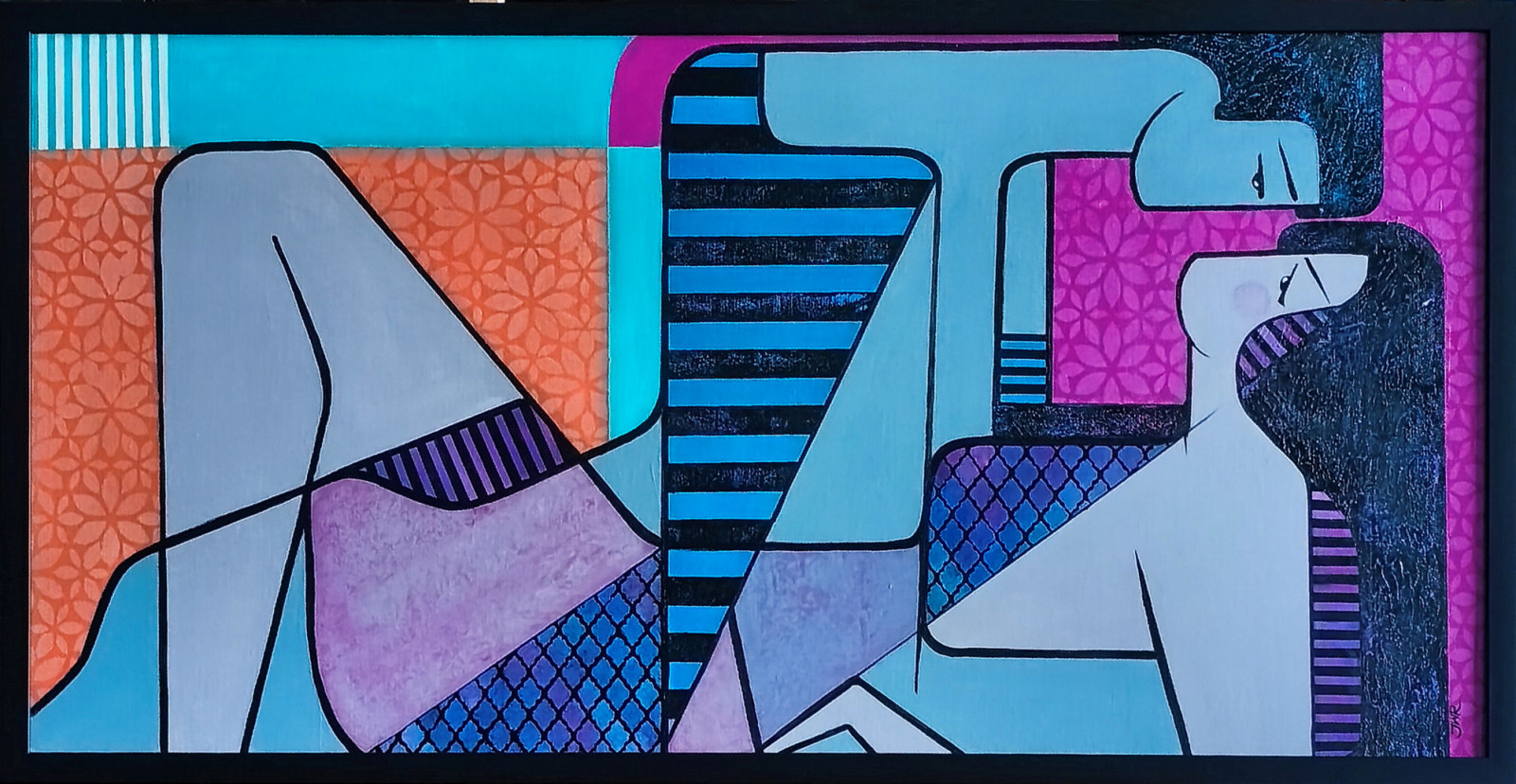Obraz na płótnie, wykonany w technice akrylowej. Obraz jest oprawiony w czarną ramę . Wymiar obrazu w oprawie : 52 x 102 cm.