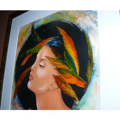 Obraz oprawiony w passepartout oraz czarno-złotą ramę ze szkłem