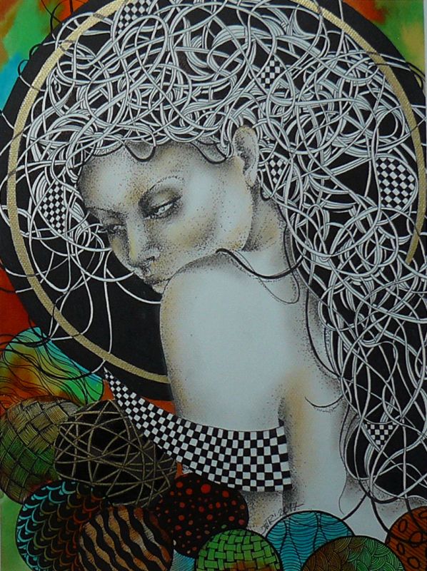 Technika wlasna (sangwina, cienkopisy, ecoline) na papierze Canson