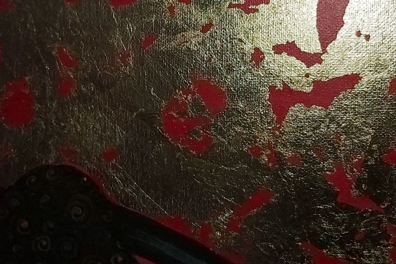 Akryl, olej, szlagmetal na płótnie, wymiar 50x100
