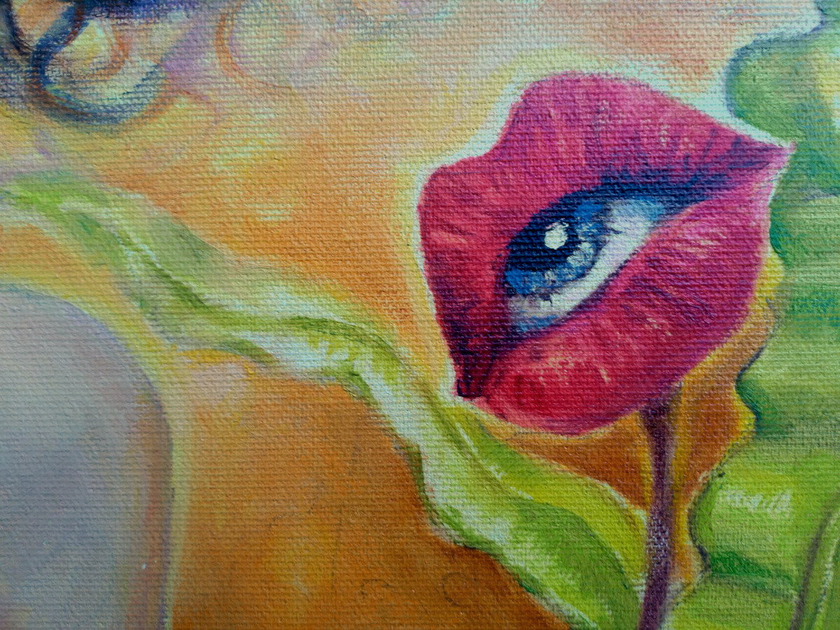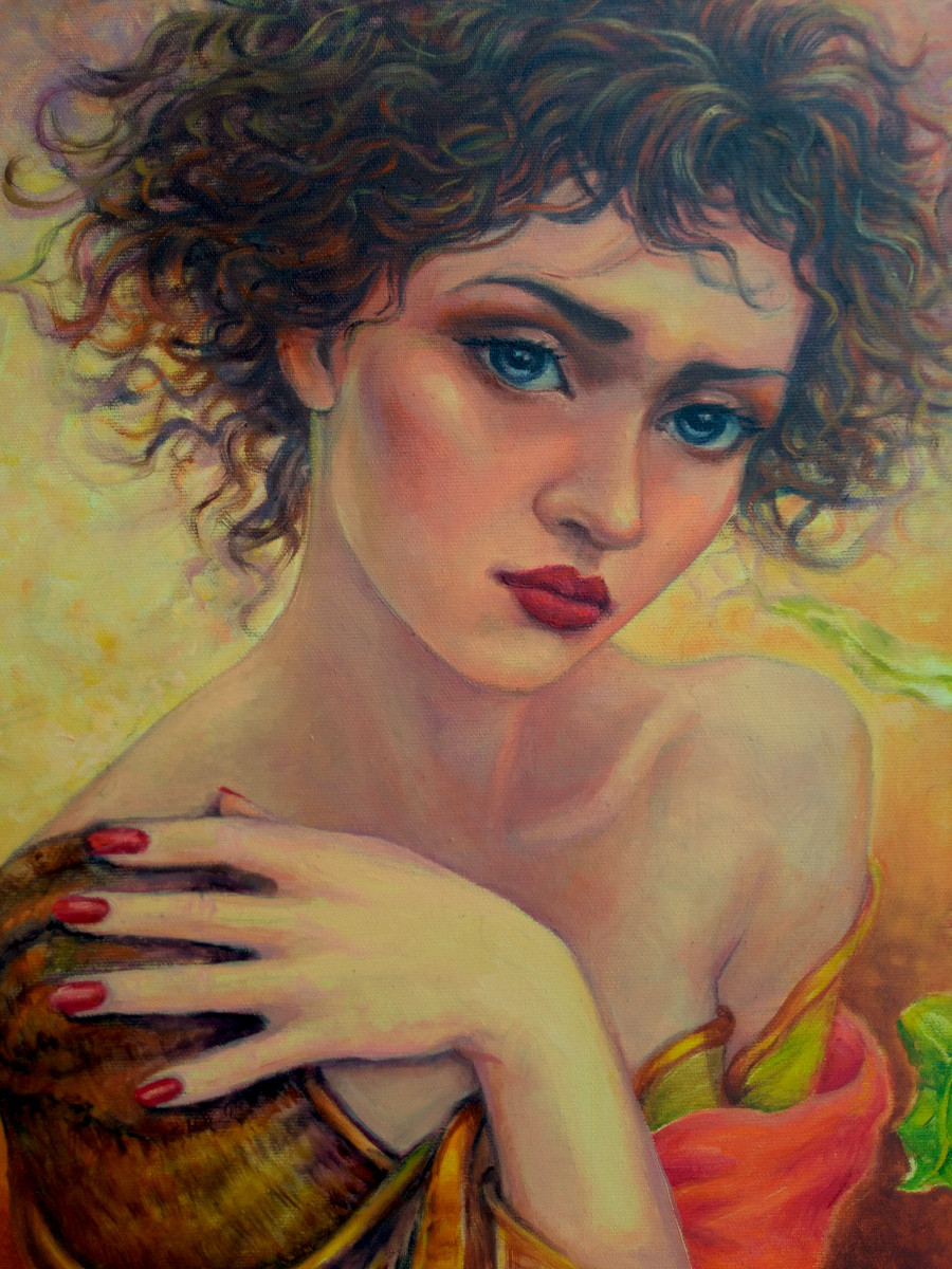 Obraz olejny z cyklu Kobiety Magiczne, nawiązujący do nurtu Realizmu Magicznego.