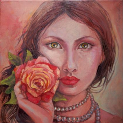 Obraz pt.: "RÓŻA" z cyklu "Kobiety Magiczne" , niepowtarzalny, kobiecy i wrażliwy.