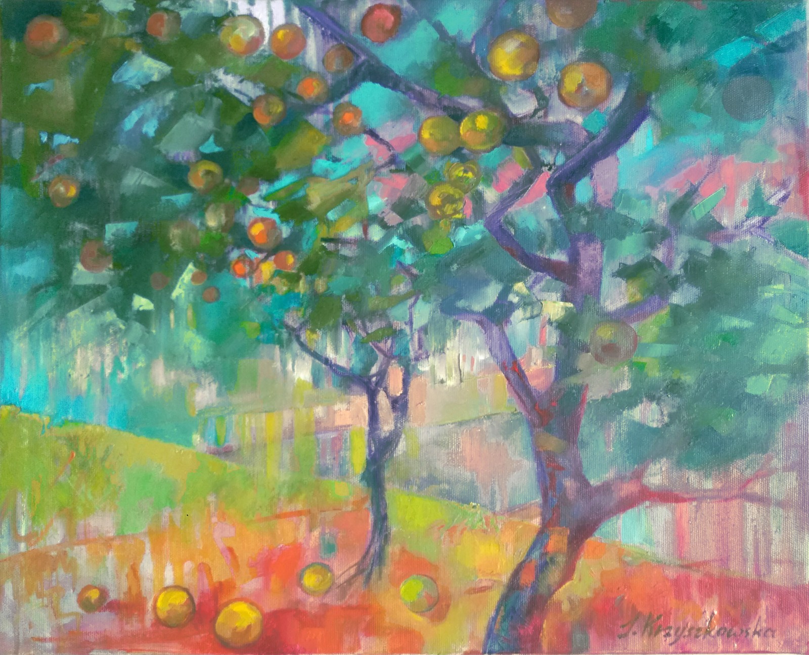 Obraz olejny w formacie 50x40 cm, namalowany na płótnie naciągniętym na krosno. Boki zamalowane w tonacji obrazu.
