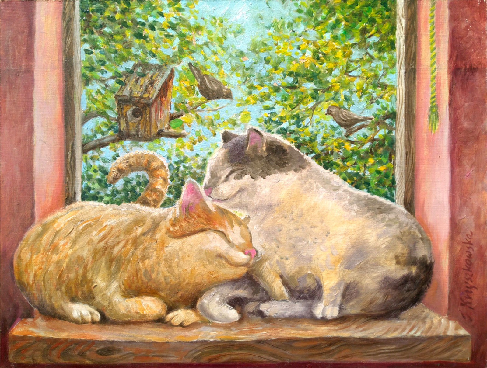 Obraz olejny z cyklu KOCHAJMY KOTKI. pt.:ZAKOCHANE KOTKI