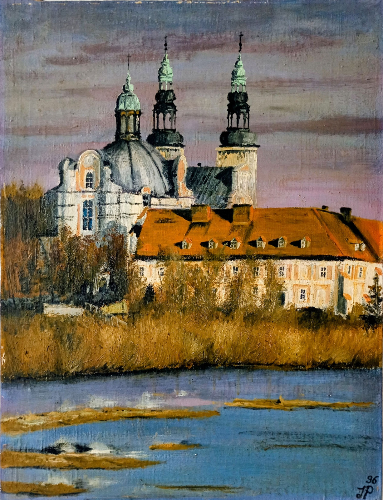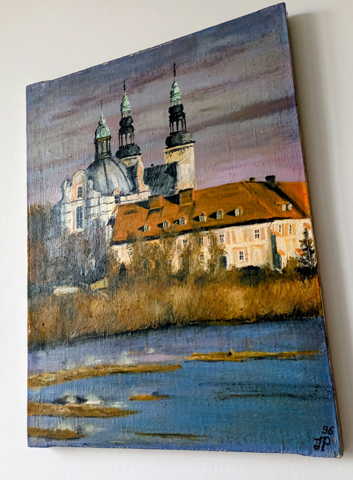 Obraz olejny na płótnie o wymiarach 50x66 cm przedstawiający opactwo w Lądzie nad Wartą.
