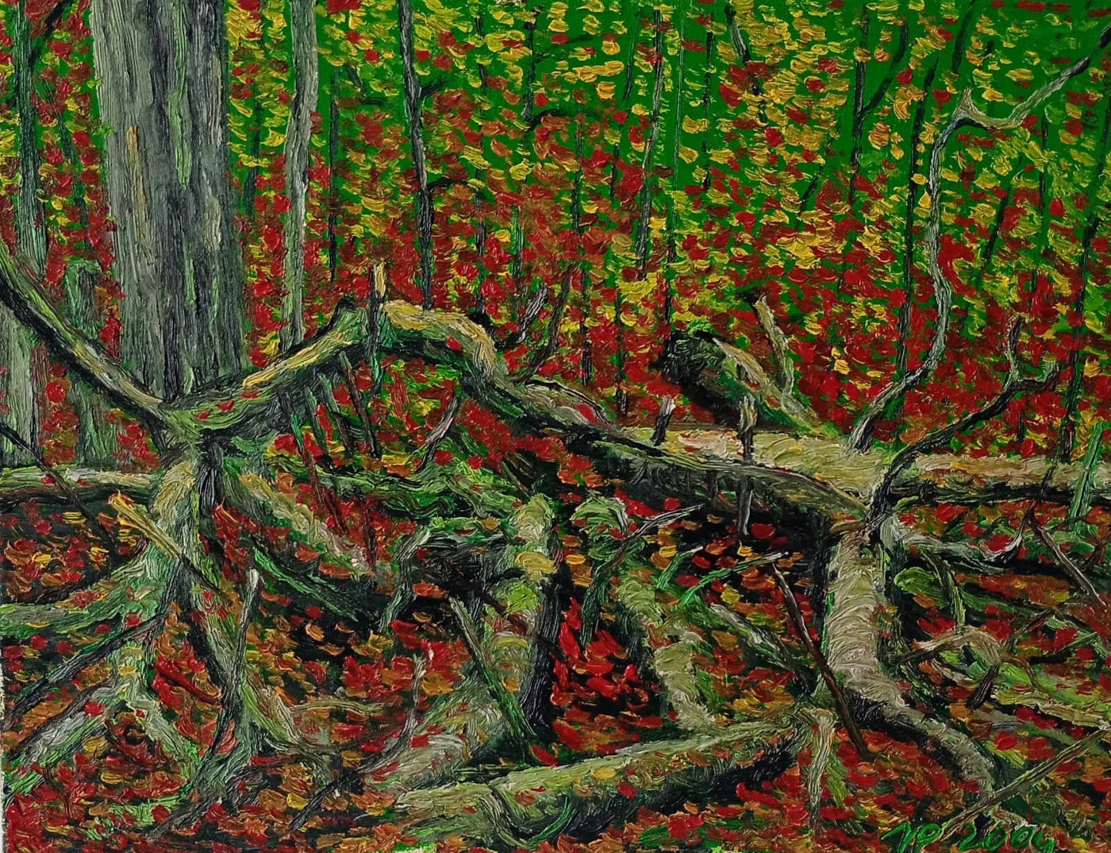 Obraz olejny na płótnie o wymiarach 40x30 cm przedstawiający polską puszczę.