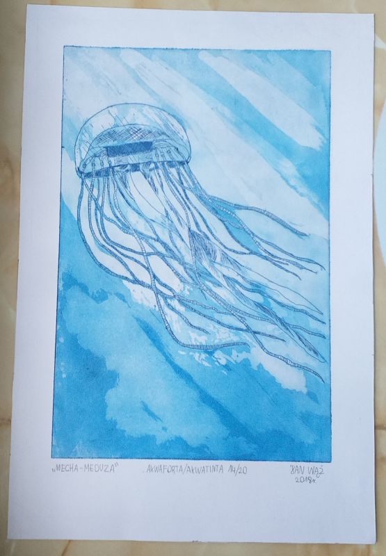 Grafika wykonana w dwóch łączonych technikach, akwaforcie oraz akwatincie.