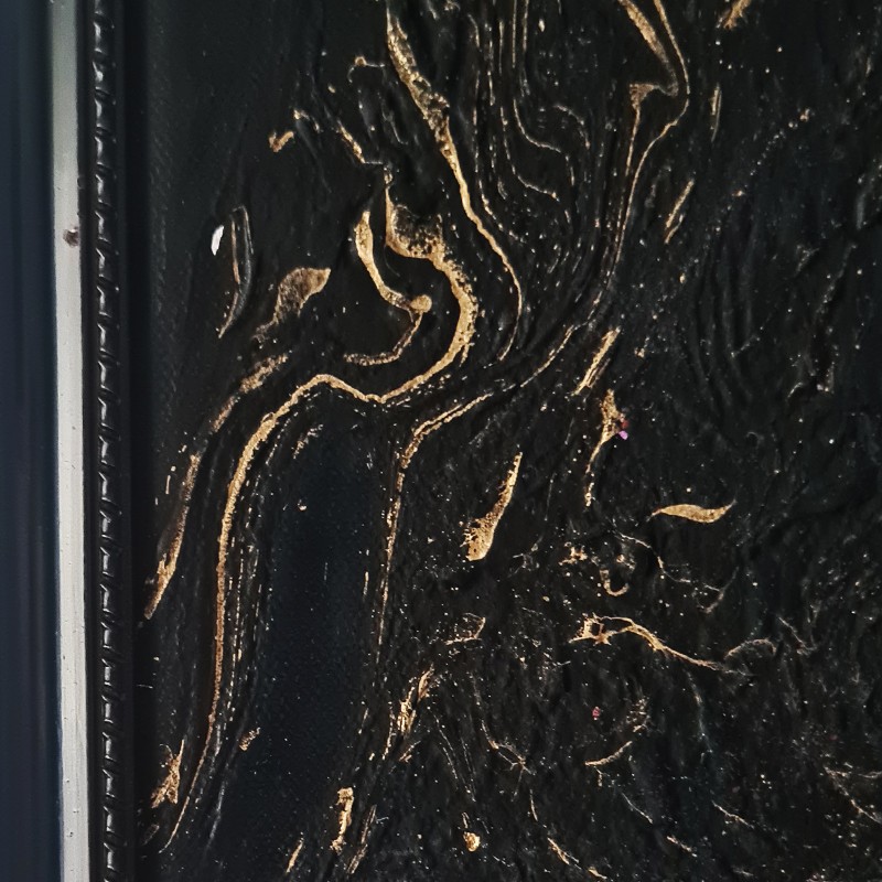 wykonany mieszanką farb akrylowych ze złotym pigmentem,