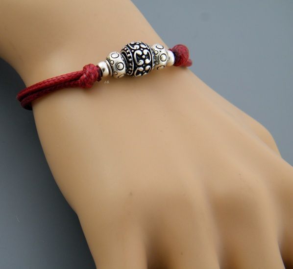 Bransoletka, wykonana z jubilerskiego sznurka ( sznurek średnicy 2 mm - bardzo dobrej jakości, mocno woskowany)z dekoracyjnymi przekładkami typu pandora.