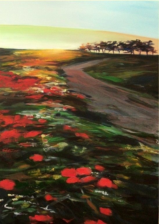 Dyptyk : dwa oryginalne obrazy akrylowe , każdy o wymiarach 70 cm x 50 cm, tworzące całość (wymiary całości 70 cm x 100 cm).