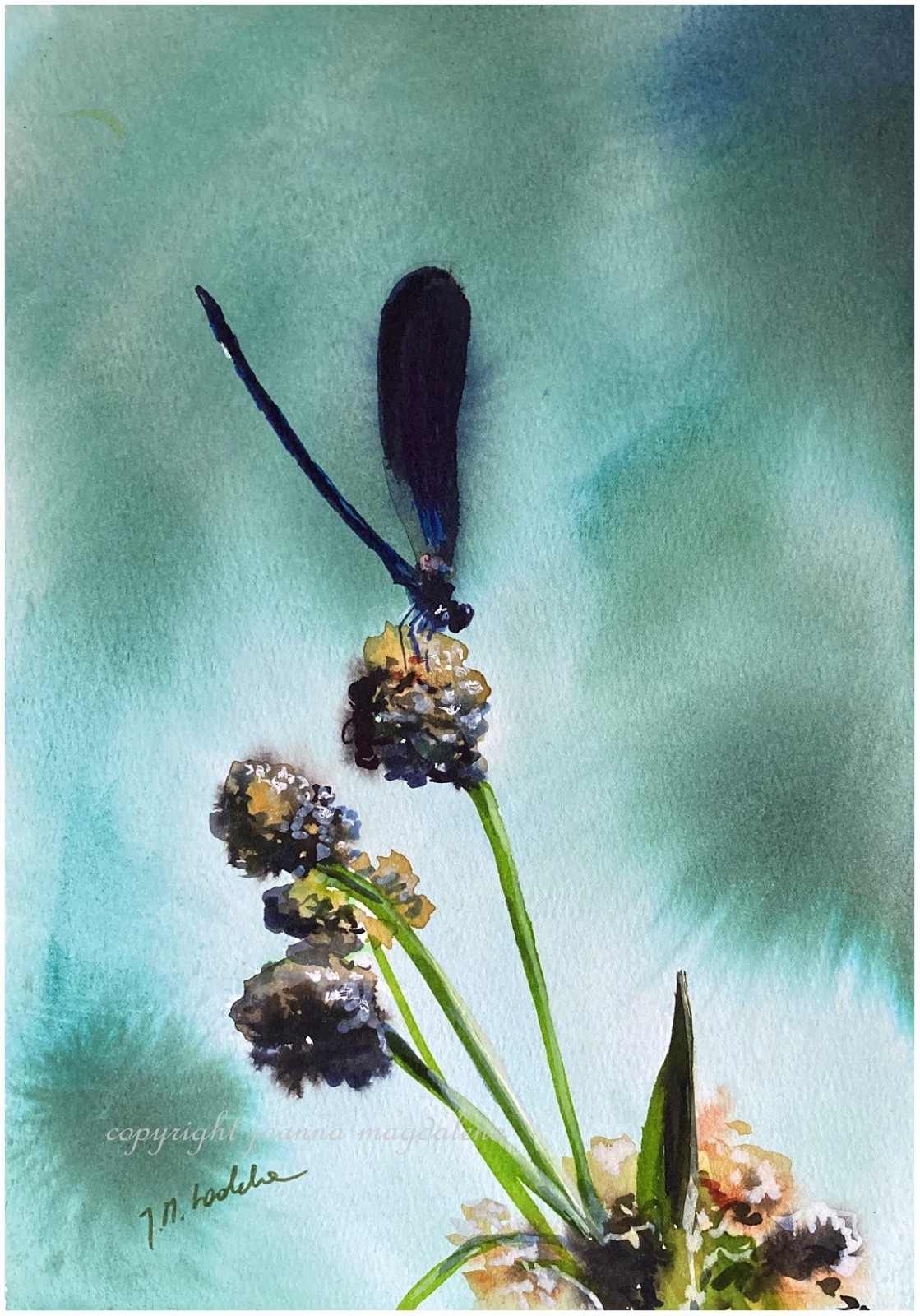 Akwarela inspirowana magicznym światem przyrody . Praca o wymiarach 27 cm x 19 cm, sygnowana, namalowana na wysokiej jakości papierze akwarelowym . Oprawiona w passe-partout i prosta ramę + pleksi. Wymiary z p. partout : 30 cm x 21 cm