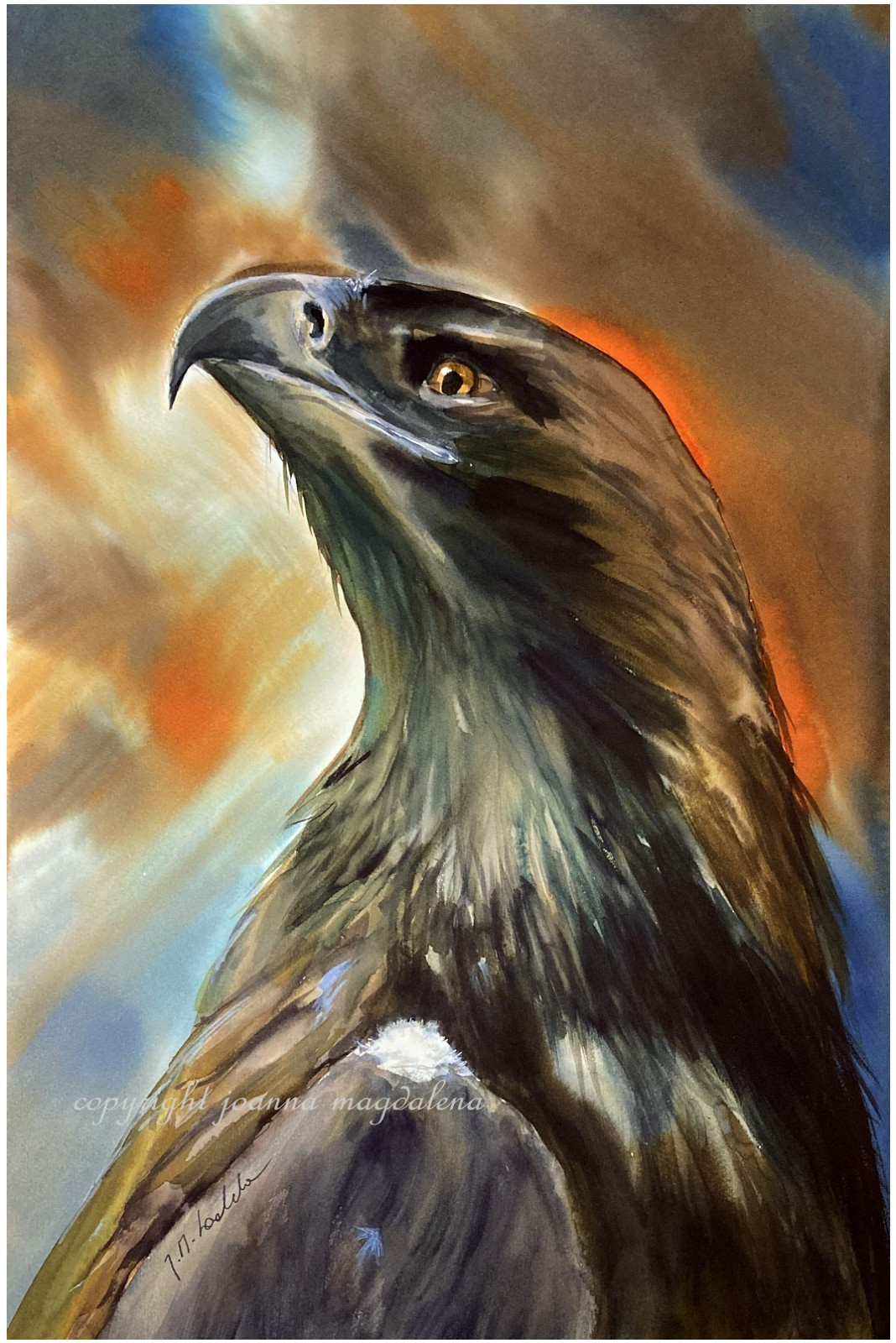 Duża , nastrojowa akwarela należąca do cyklu Fauny i Flory