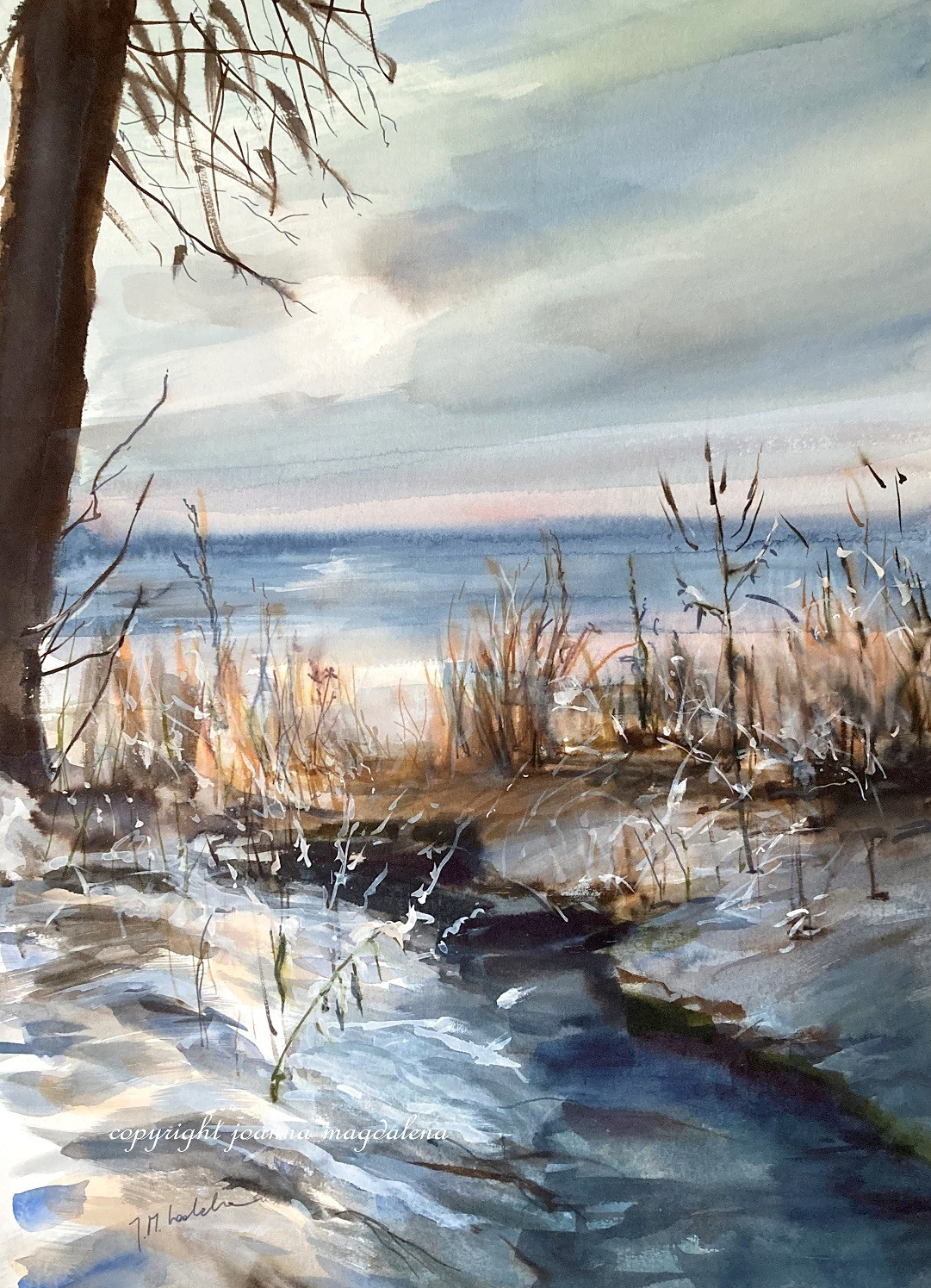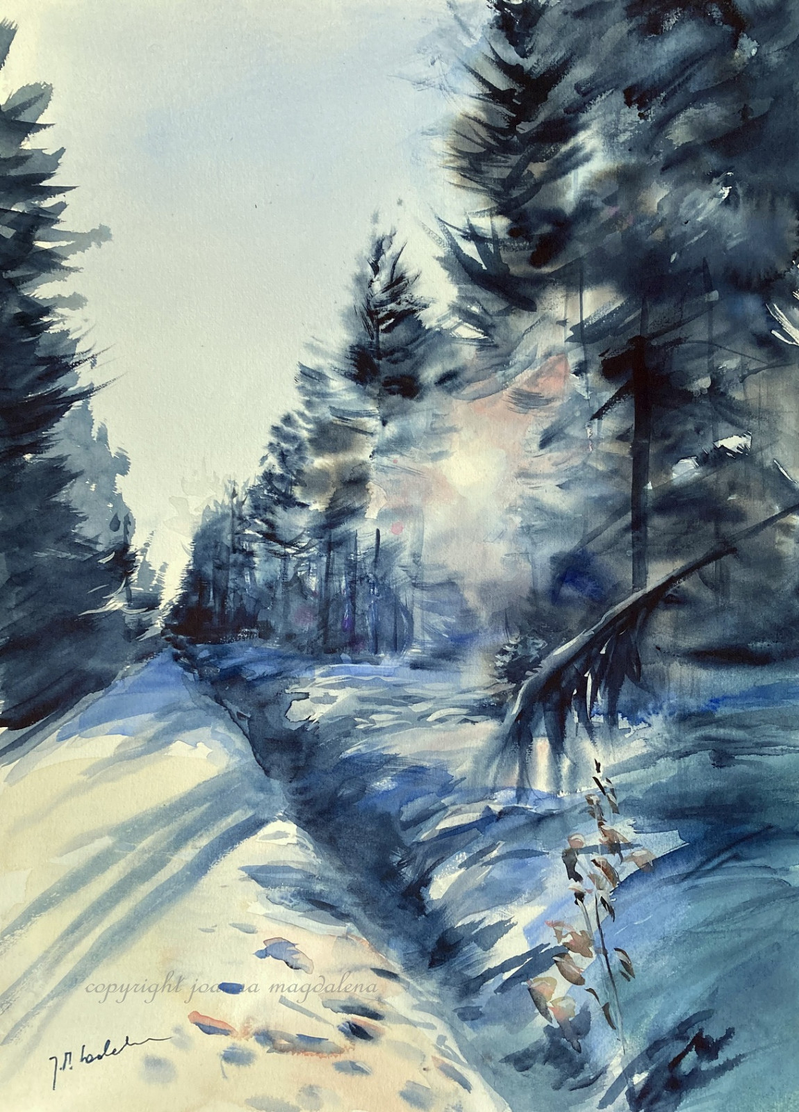 2 Pejzaże zimowe namalowany na wysokiej jakości papierze akwarelowym o trwałości archiwalnej.