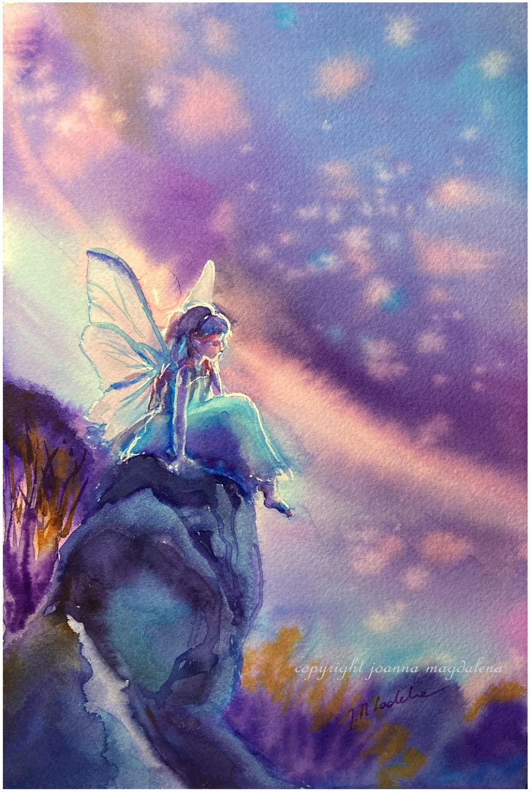 Akwarela należąca do cyklu Między ziemią a niebem namalowana na wysokiej jakości papierze akwarelowym o trwałości archiwalnej. Wymiary akwareli 28 cm x 19 cm. Oprawiona w passe-partout do wymiaru zewnętrznego 40 cm x 30 cm.