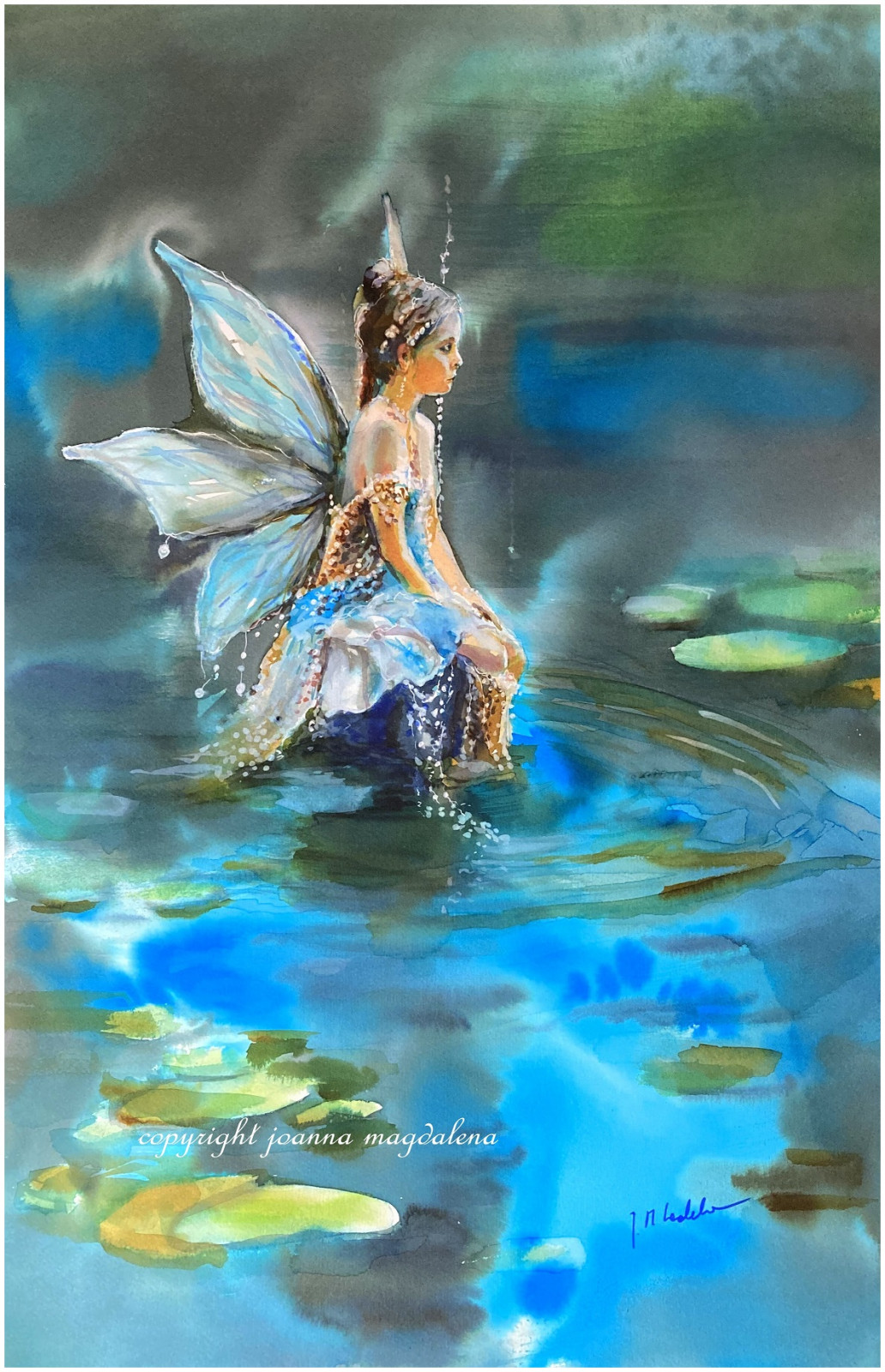 Duża , nastrojowa akwarela namalowana na wysokiej jakości papierze akwarelowym o trwałości archiwalnej, sygnowana, oprawiona w passe-partout.
