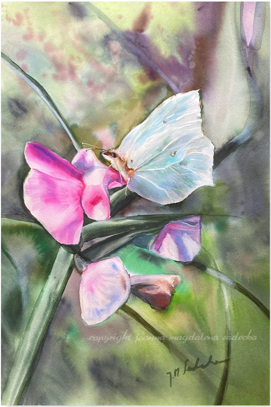 Nastrojowa wiosenna akwarela namalowana na wysokiej jakości papierze akwarelowym o trwałości archiwalnej.