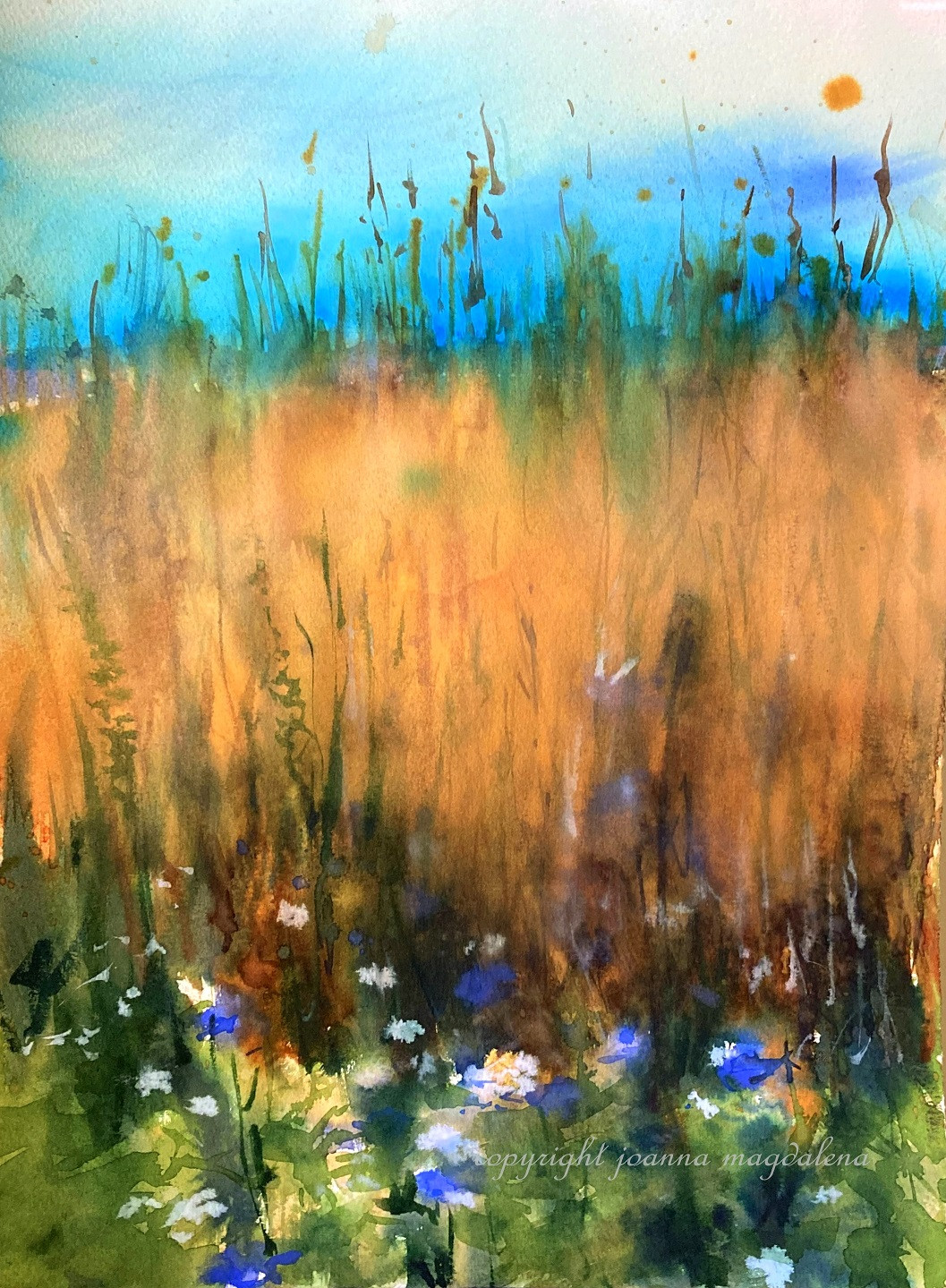 Nastrojowa akwarela inspirowana magicznym światem przyrody . Praca o wymiarach 40 cm x 30 cm, sygnowana, namalowana na wysokiej jakości papierze akwarelowym 300 g o trwałości archiwalnej. Oprawiona w passe-partout .Wymiary z passe-partout : 40 cm x 50 cm.