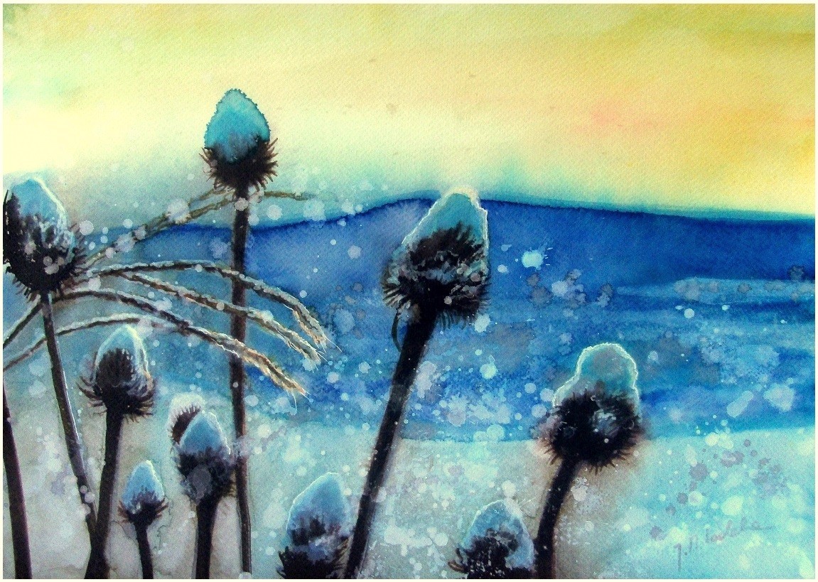 Zimowa akwarela inspirowana magicznym światem przyrody . Praca o wymiarach 40 cm x 30 cm, sygnowana, namalowana na wysokiej jakości papierze akwarelowym Wnsor&Newton .