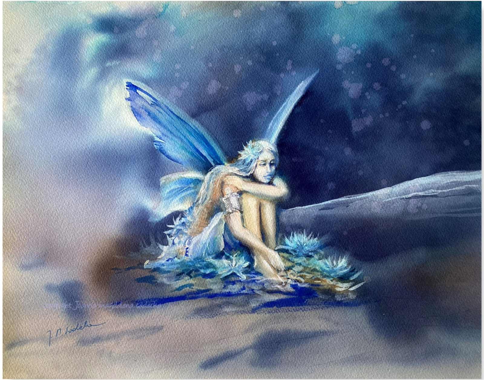 Akwarela należąca do cyklu Między ziemią a niebem namalowana na wysokiej jakości papierze akwarelowym o trwałości archiwalnej. Oprawiona w passe-partout do wymiaru zewnętrznego 50 cm x 40 cm (wymiary samej akwareli wynoszą 31 cm x 41 cm).