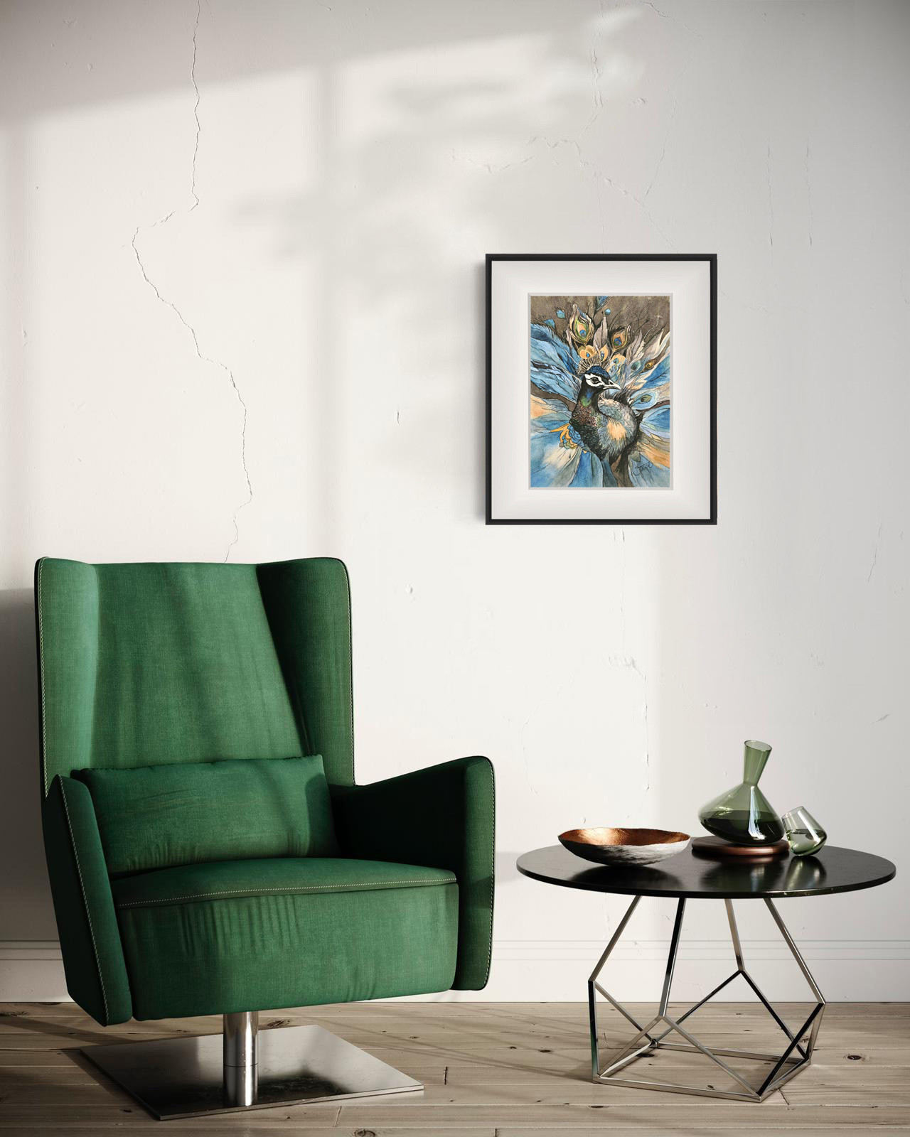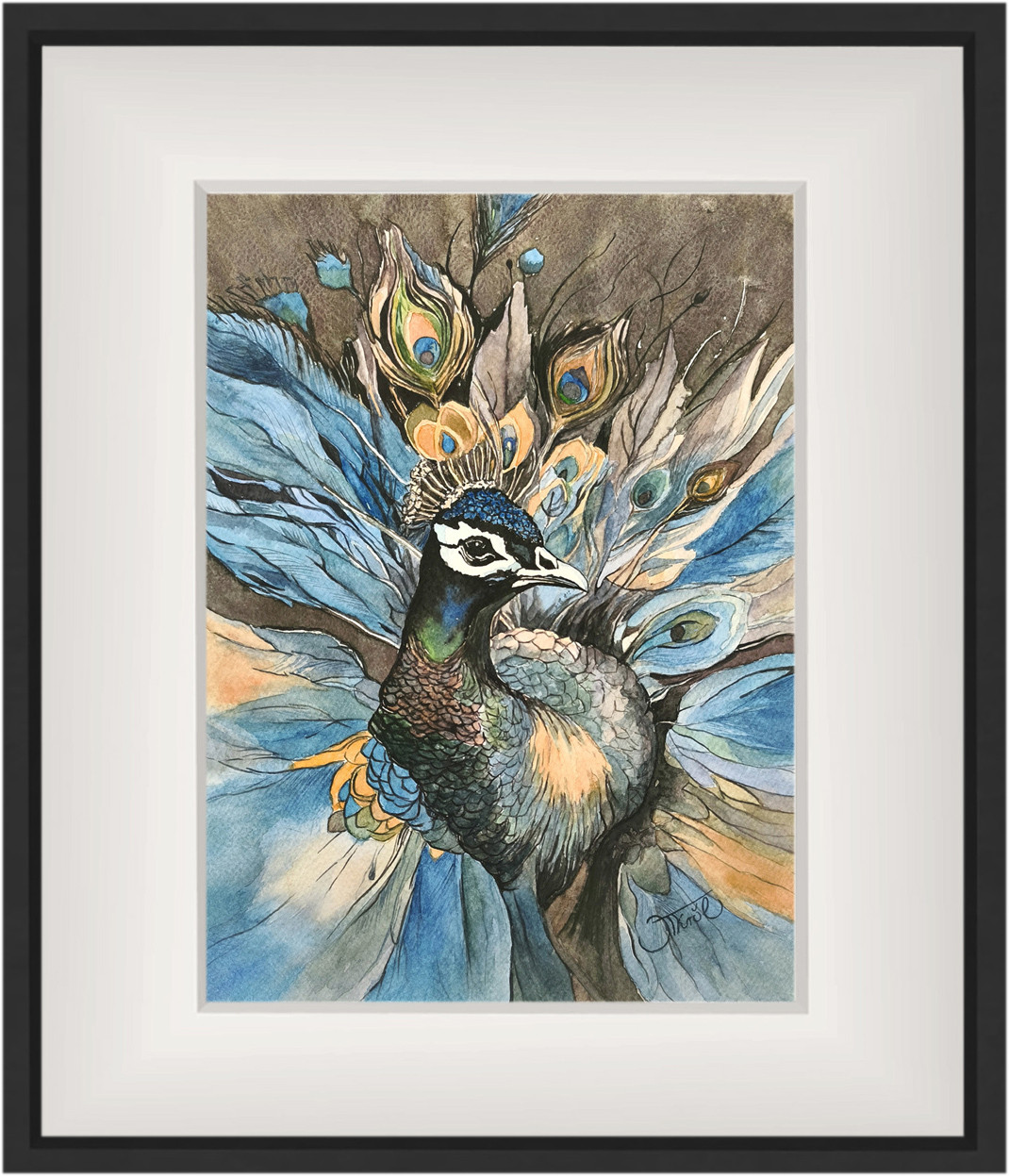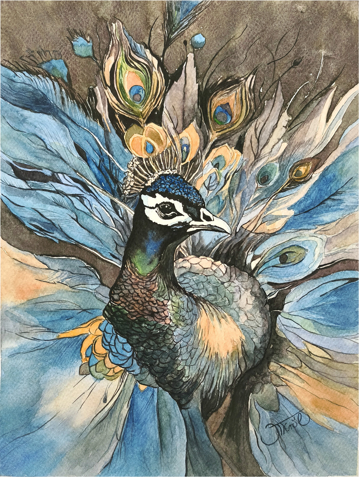 Czujność pawia, Akwarela 24 x 32 cm