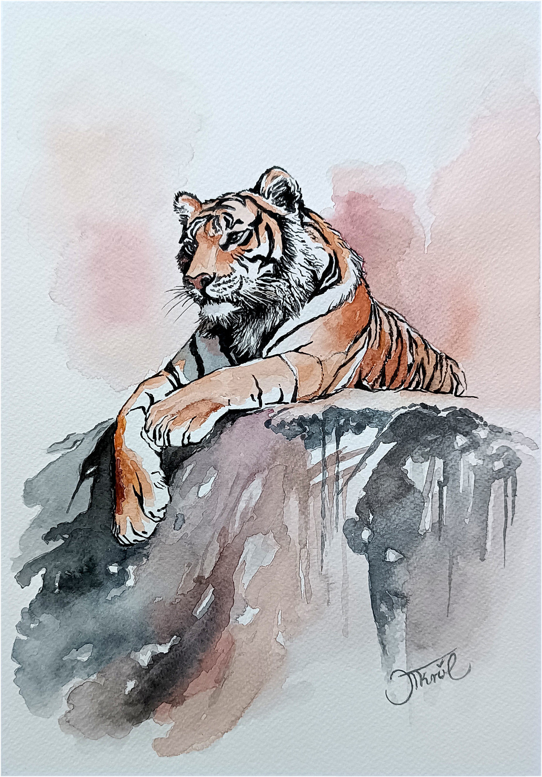 Tygrysie obserwacje, Akwarela 32x24 cm