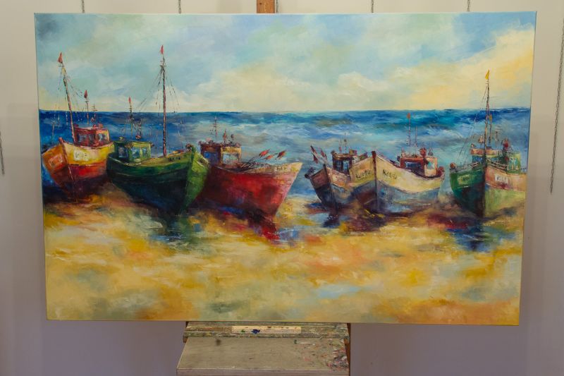 Obraz olejny o rozmiarze 140x90cm malowany techniką szpachli, gruba garmatura farby.