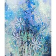 Obraz malowany farbami akrylowymi na płótnie bawełnianym. Abstrakcja pełna impastów i wariacji barw w odcieniach błękitu i bieli .