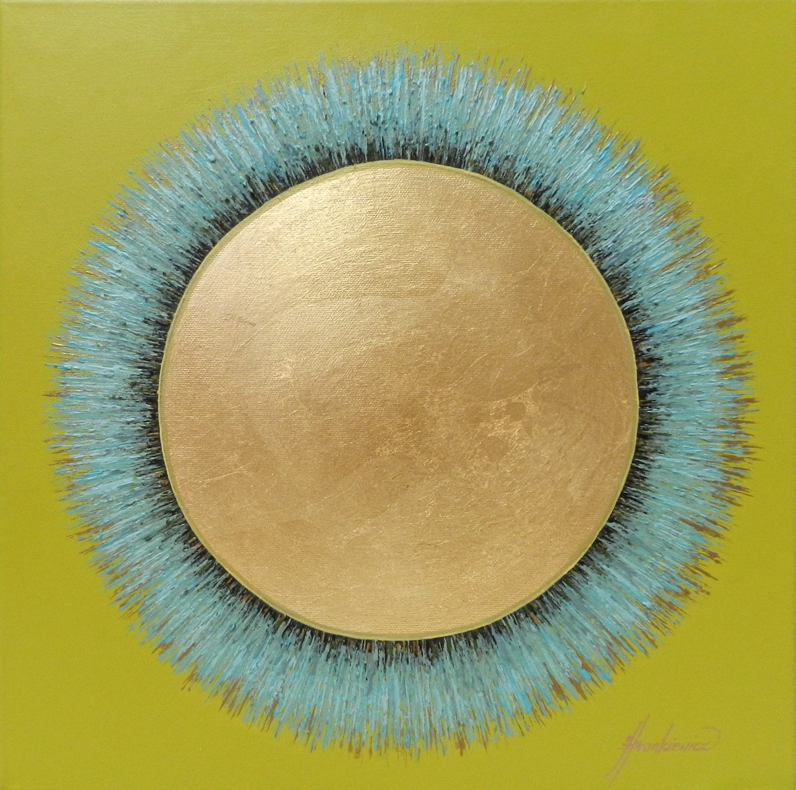 Technika własna - farby akrylowe, farby metaliczne, złocenia wykonane szlagmetalem .