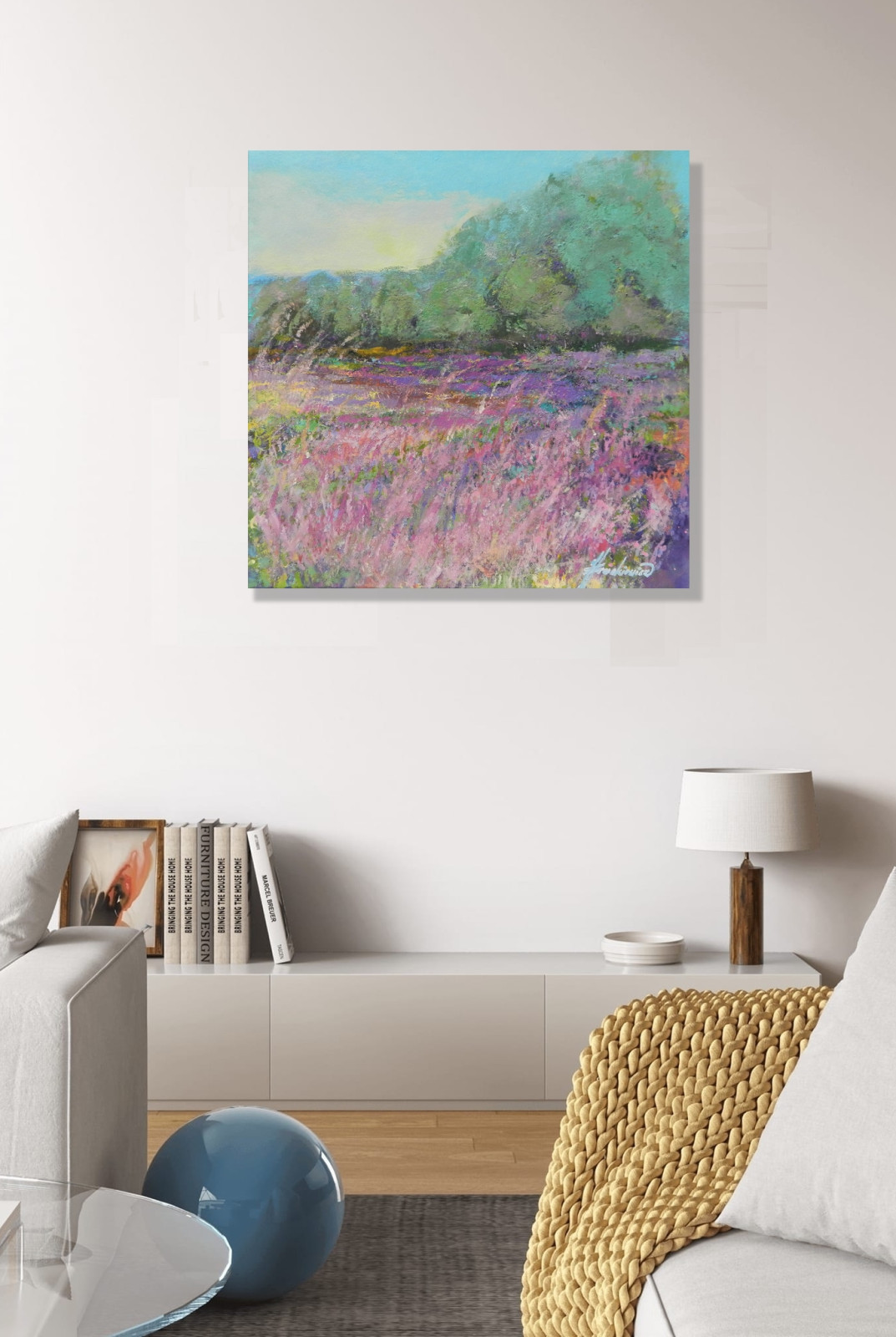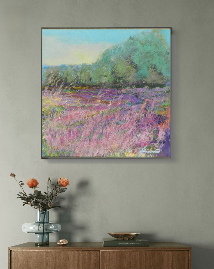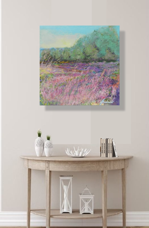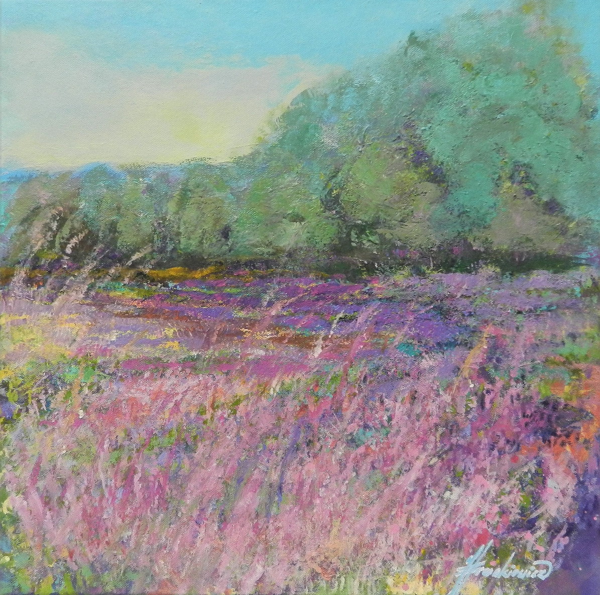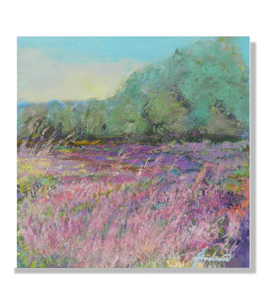 ..wrzosowa łąka - impresyjny , pogodny pejzaż o wyrazistej kontrastującej kolorystyce z odrobiną ekspresji.