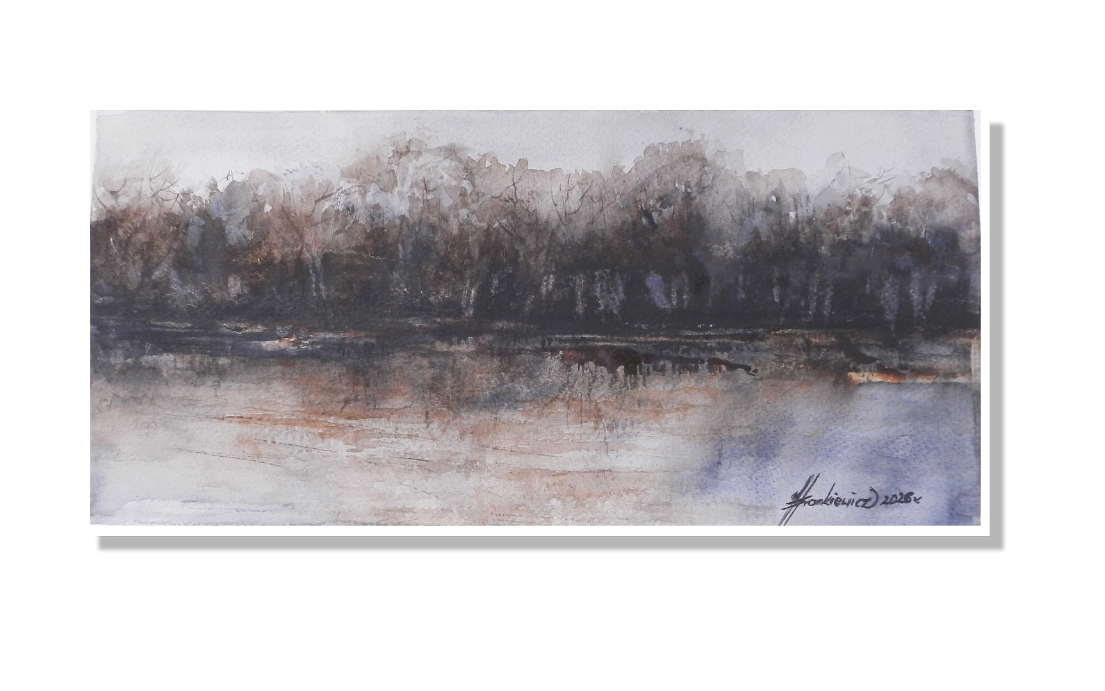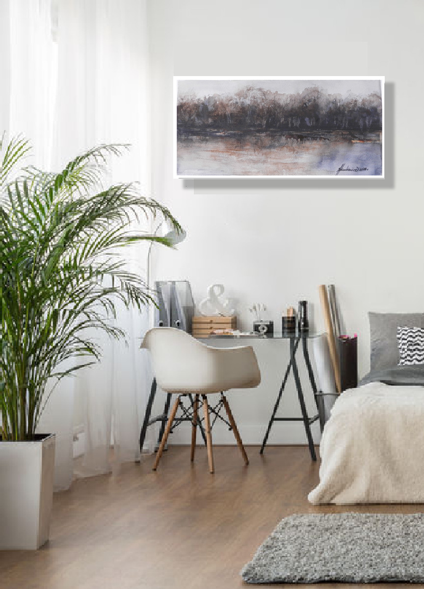 ,,Zmierzchanie ,,– minimalistyczna , stonowana akwarela na papierze artystycznym o grubości 300 g/m2. Format wertykalny 20x40 cm. Nastrojowy, abstrakcyjny pejzaż o niskiej , oszczędnej tonacji barw, skupiającej się na atmosferze, świetle i cieniu. Praca posiada autorski, naturalnie biały margines (ok. 0,8 cm) ze śladami procesu tworzenia, podkreślający jej unikatowy charakter. Oryginalna praca,sygnowana przez artystkę na licu oraz na odwrocie, zabezpieczona werniksem. Idealna do nowoczesnych, surowych wnętrz. Wysyłka w bezpiecznym, kartonowym opakowaniu, gwarantującym nienaruszony stan papieru.